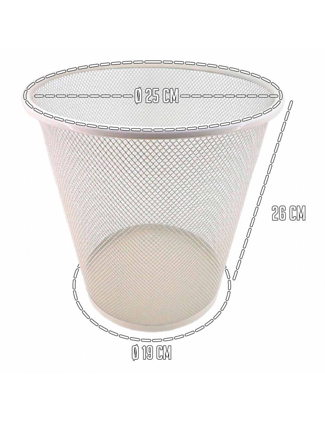 Tradineur - Papelera de rejilla - Fabricado en Metal - Ideal para Oficinas, Habitaciones y Aulas - Ø 26 x 25 cm - Color Blanco