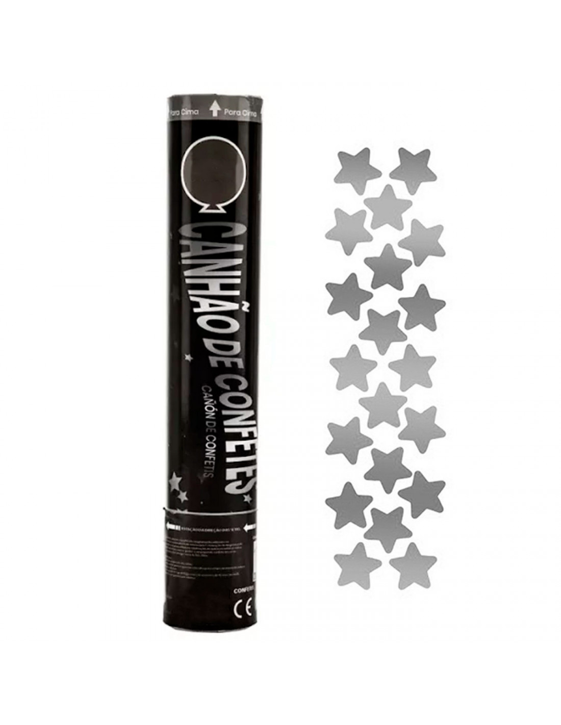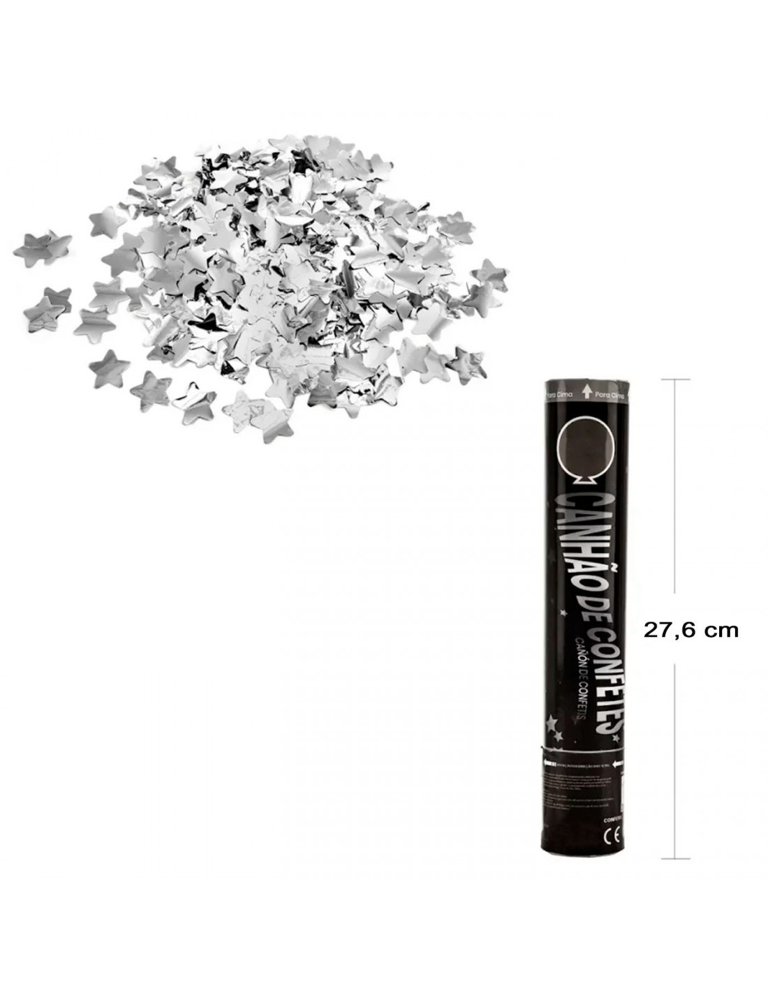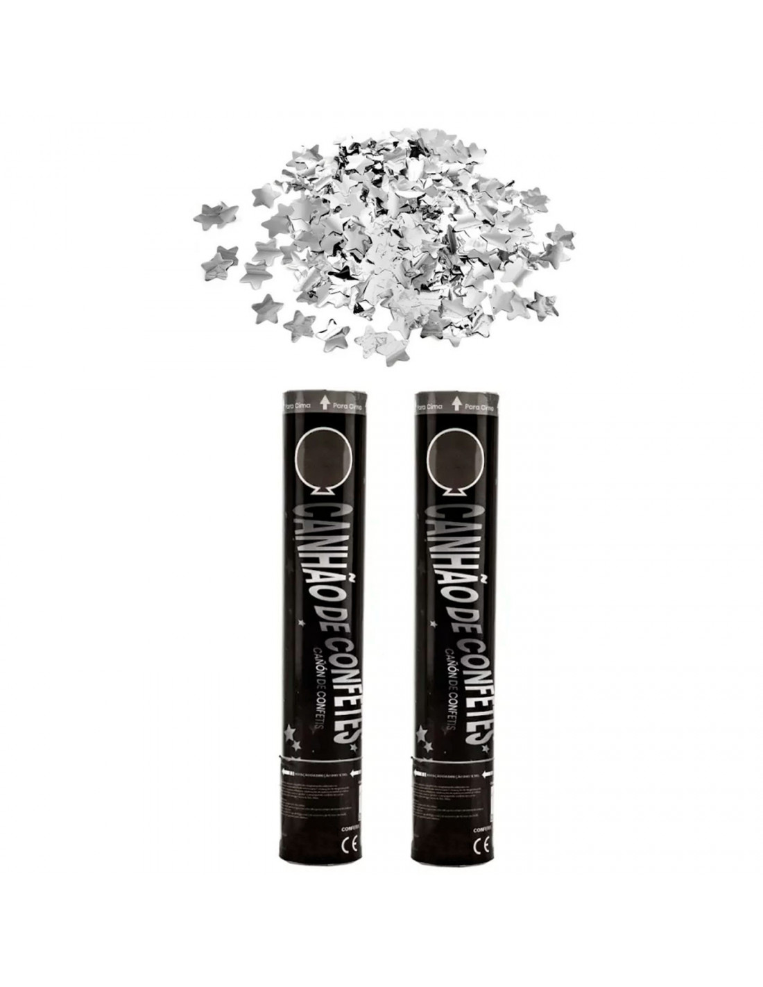 Tradineur - Pack de 2 cañones de confeti de aire comprimido, popper, cracker de confetti, cumpleaños, bodas, fiestas, celebraciones (Estrellas plateadas - 30 cm)