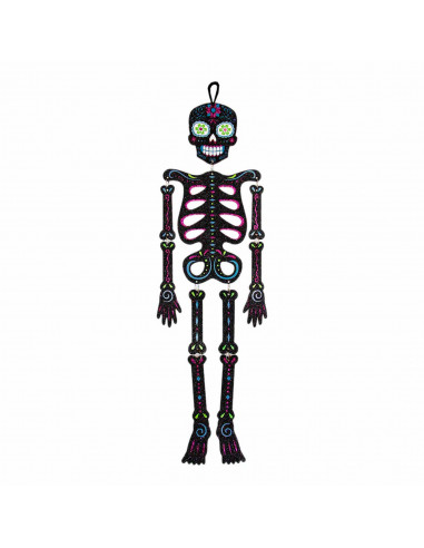 Tradineur - Esqueleto colgante con diseño mexicano para Halloween - Fabricado en plástico - Adorno para decoración - Longitud 66 cm - Color Surtido