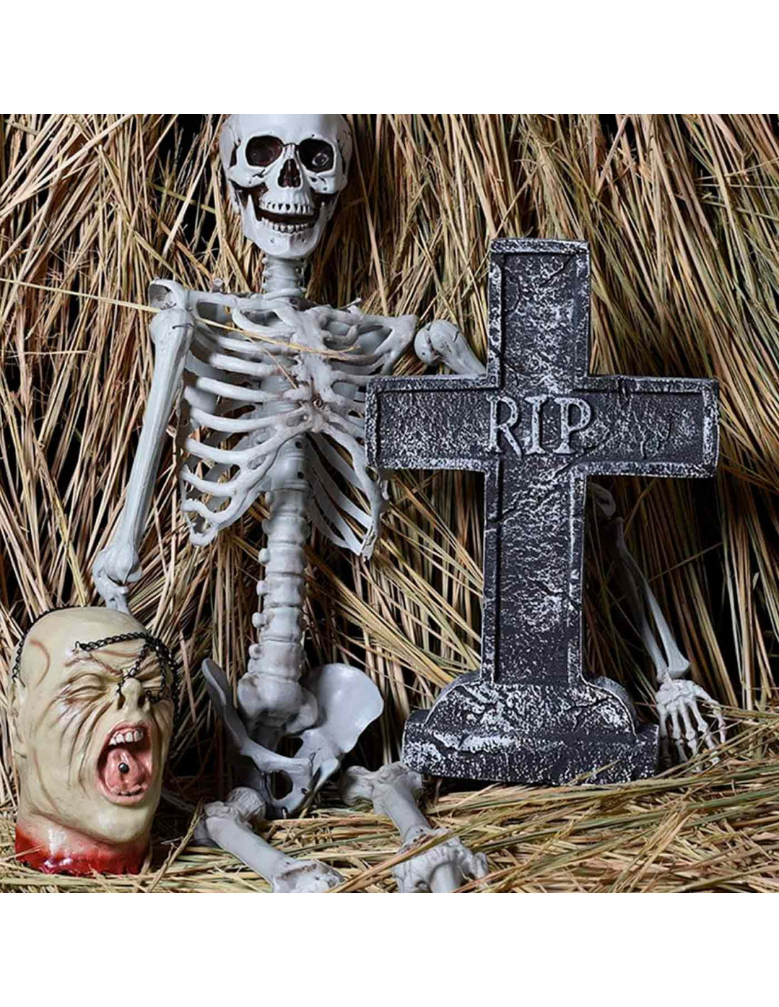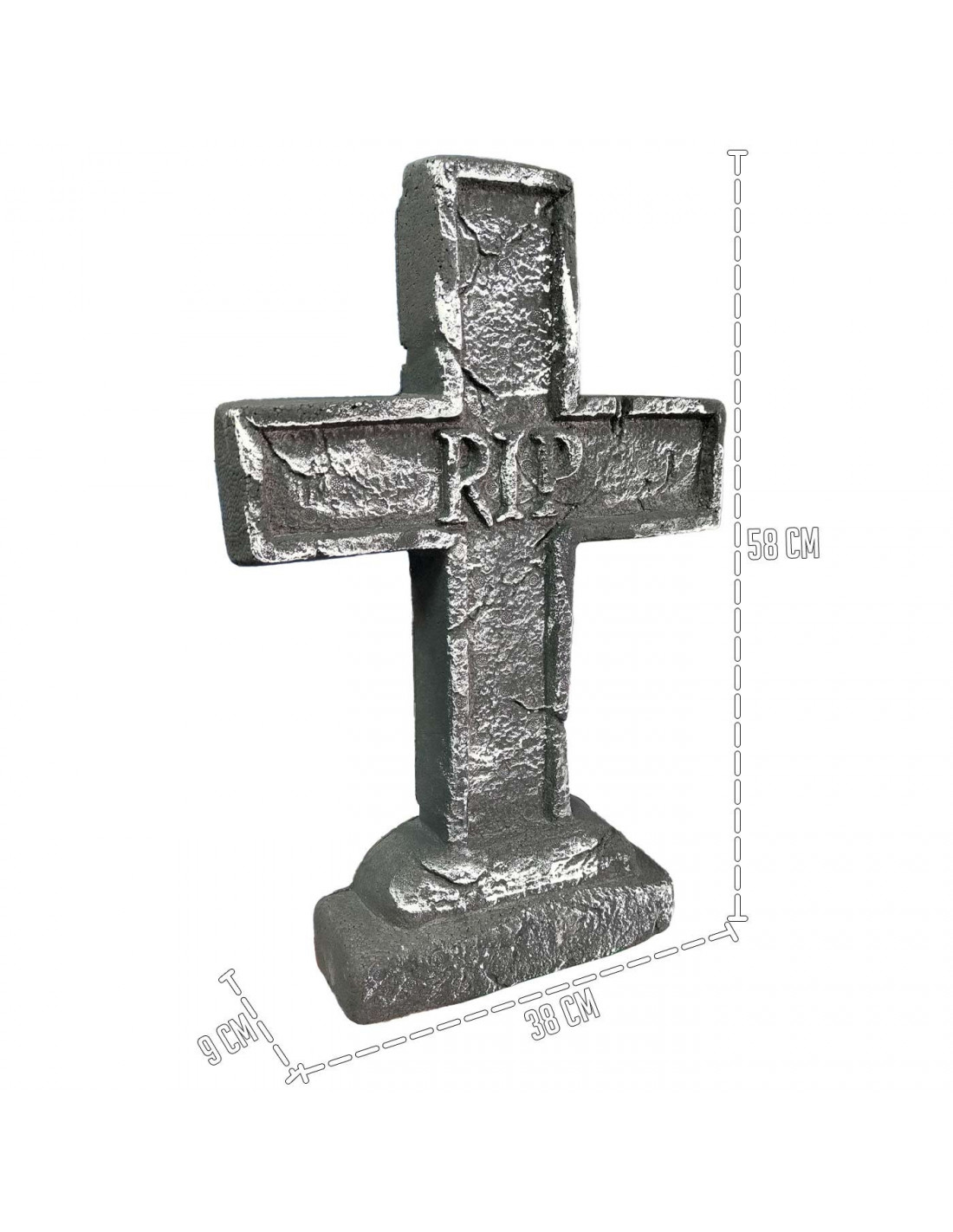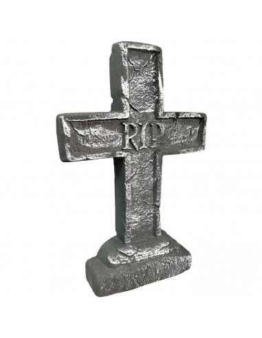 - Diseño realista: Lápida en forma de cruz con grabado "RIP", perfecta para crear un ambiente espeluznante en Halloween.