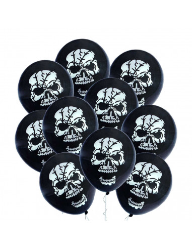 Tradineur - Pack de 10 globos - Diseño Calaveras - 30 cm al inflar - Ideal como decoración de tu hogar y celebrar de halloween.