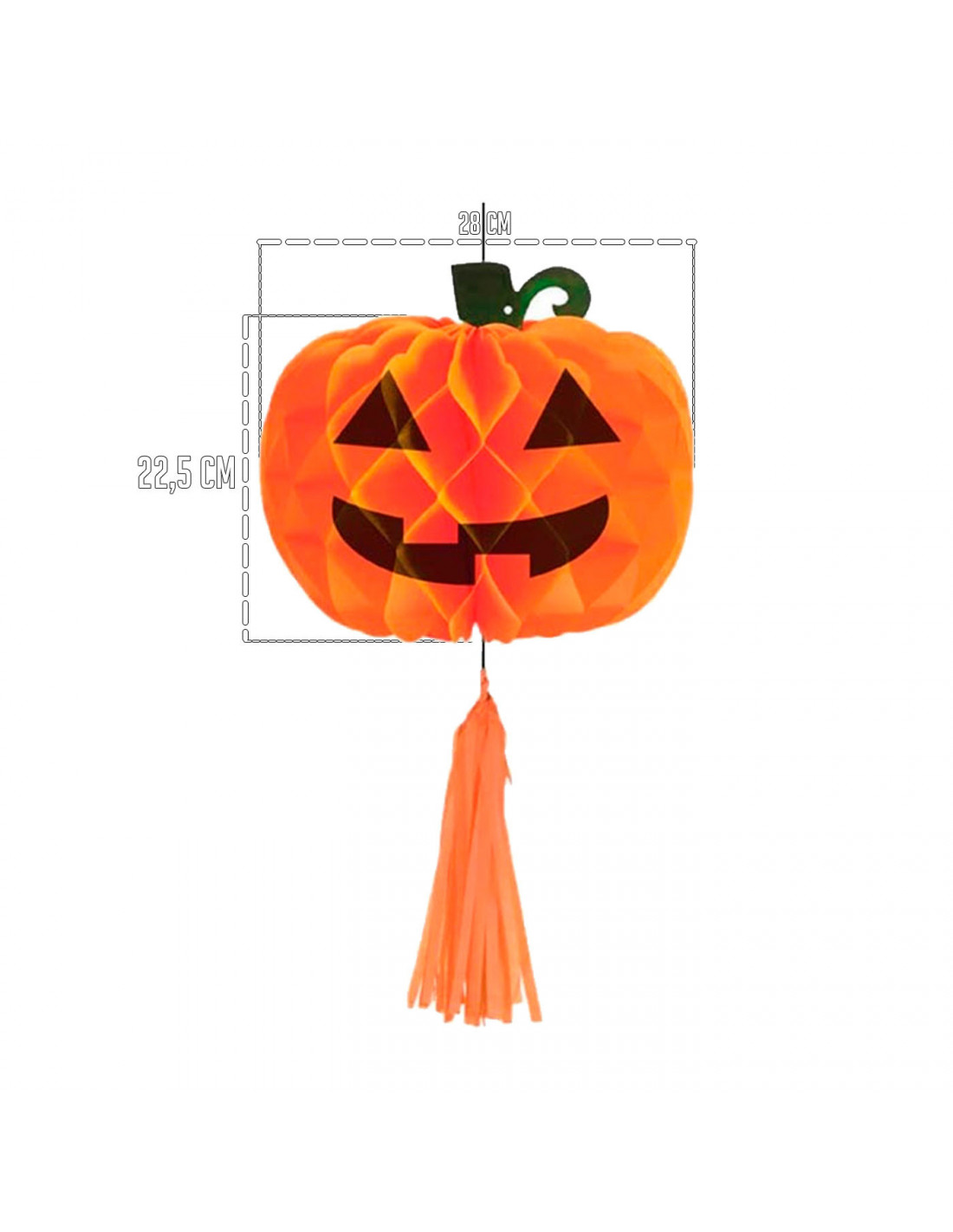 El pack de 2 calabazas colgantes para halloween es un conjunto decorativo ideal para ambientar fiestas de disfraces y celebraciones temáticas. Fabricadas en papel, estas calabazas destacan por su diseño ligero y fácil de colgar, lo que permite colocarlas en diversos espacios como techos, puertas o ventanas. Con un tamaño aproximado de Ø 28 cm de diámetro y 22,5 cm de altura, estas decoraciones aportan un toque festivo clásico que evoca el espíritu de halloween con su forma tradicional y colores vibrantes.