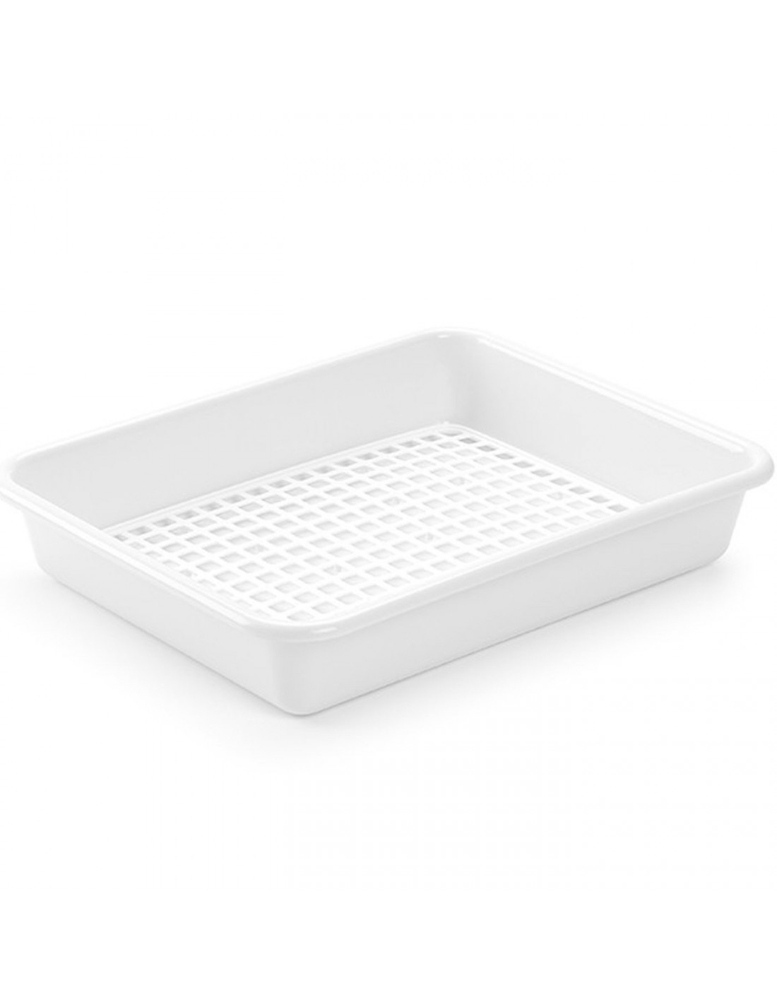 Con esta práctica bandeja de polipropileno tendrás el frigorífico y la despensa perfectamente organizados. Es ideal para guardar todo tipo de alimentos (verduras, frutas, carnes...) de una manera más higiénica. Aunque está pensada para uso profesional puede utilizarse también de forma doméstica para ordenar la nevera y conservar los alimentos. La bandeja es óptima para almacenar y también descongelar alimentos. Está fabricada en plástico polipropileno resistente y es de color blanco.