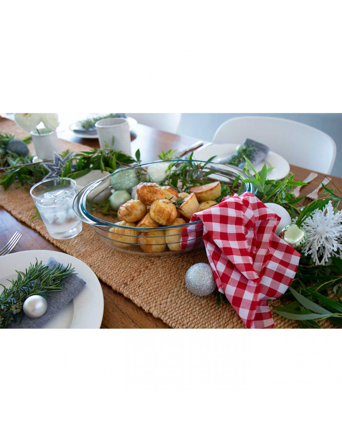 La cacerola es apta para múltiples usos ya que es válida para horno, microondas, nevera y congelador; soporta una temperatura de entre -40 ºC y 300 ºC. Sus medidas totales aproximadas (incluyendo la tapa y las asas) son de 33 x 20 x 13 cm (largo x ancho x alto).