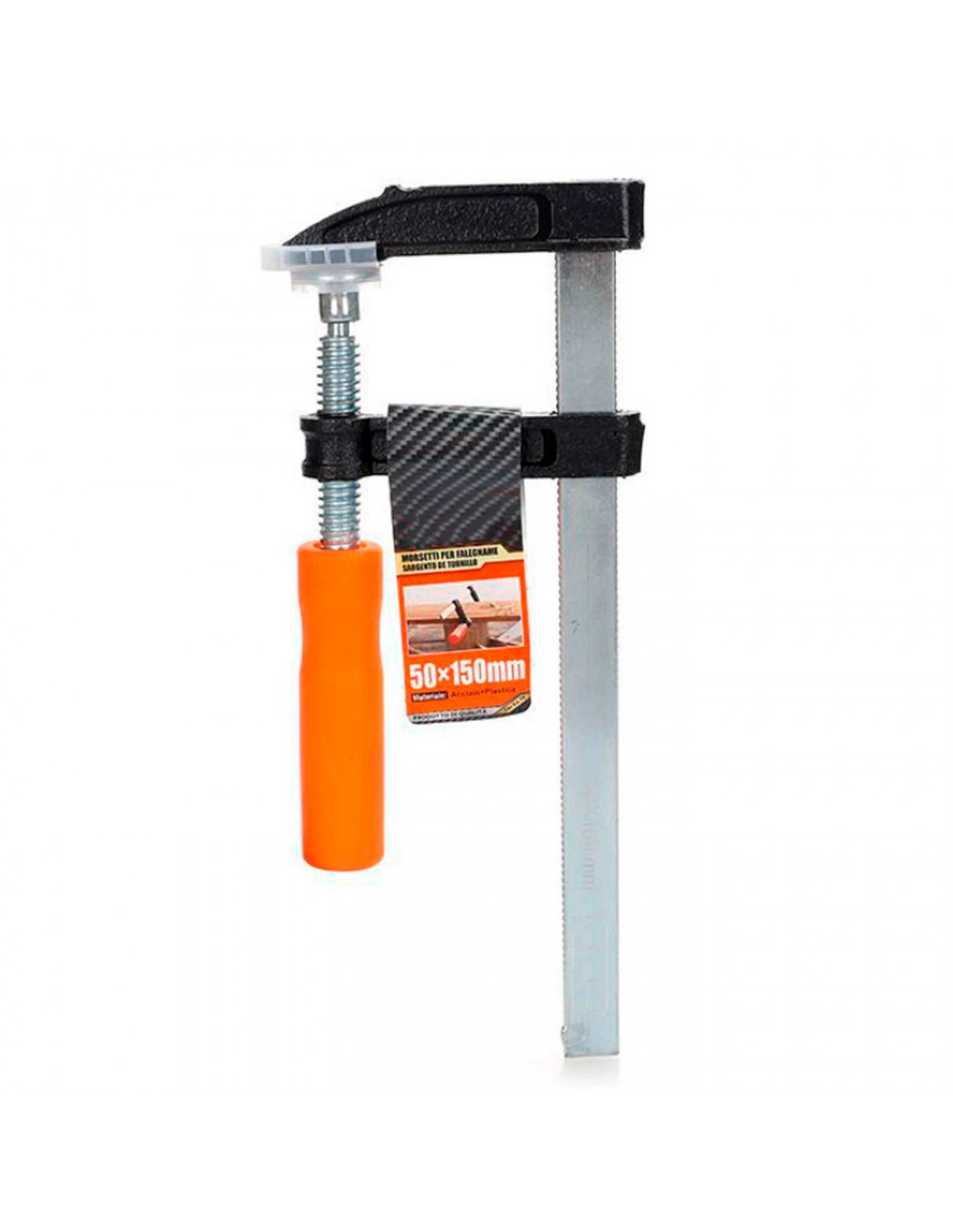 Sargento de tornillo de 50 x 150 mm ideal para fijar o sujetar distintos tipos de objetos en trabajos de carpintería, bricolaje, etc. Cuenta con una estructura de acero robusta y antioxidante; se ajusta rápido y posee una gran fuerza de sujeción. El mango está hecho de plástico y es antideslizante y ergonómico; girándolo se puede ajustar la abertura de la abrazadera hasta un máximo de 15 cm.
