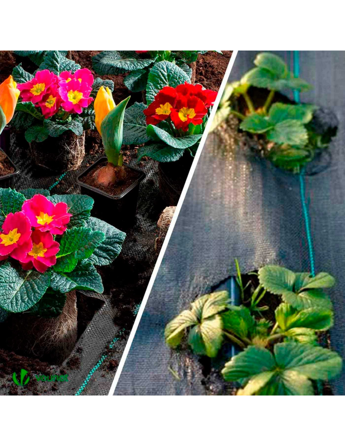 - Fabricada con materiales de alta calidad, esta malla antihierbas es duradera y resistente al desgarro