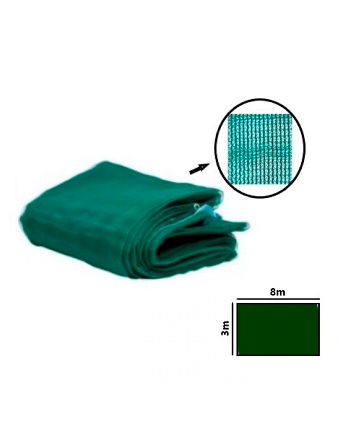 Malla para recogida de aceitunas de 3 x 8 metros de color verde oscuro. Está fabricada en polietileno de alta densidad y cuenta con un gramaje de 75 g/m2, lo que le proporciona una gran resistencia y durabilidad.