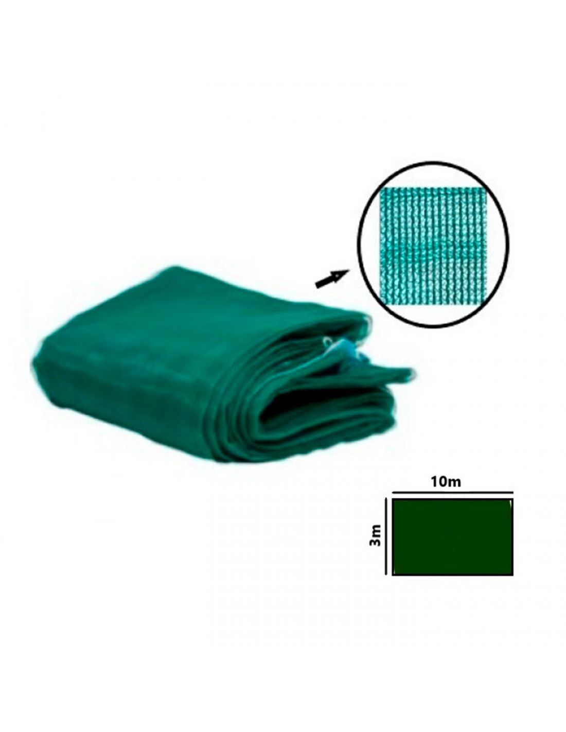 Malla para recogida de aceitunas de 3 x 10 metros de color verde oscuro. Está fabricada en polietileno de alta densidad y cuenta con un gramaje de 75 g/m2, lo que le proporciona una gran resistencia y durabilidad.