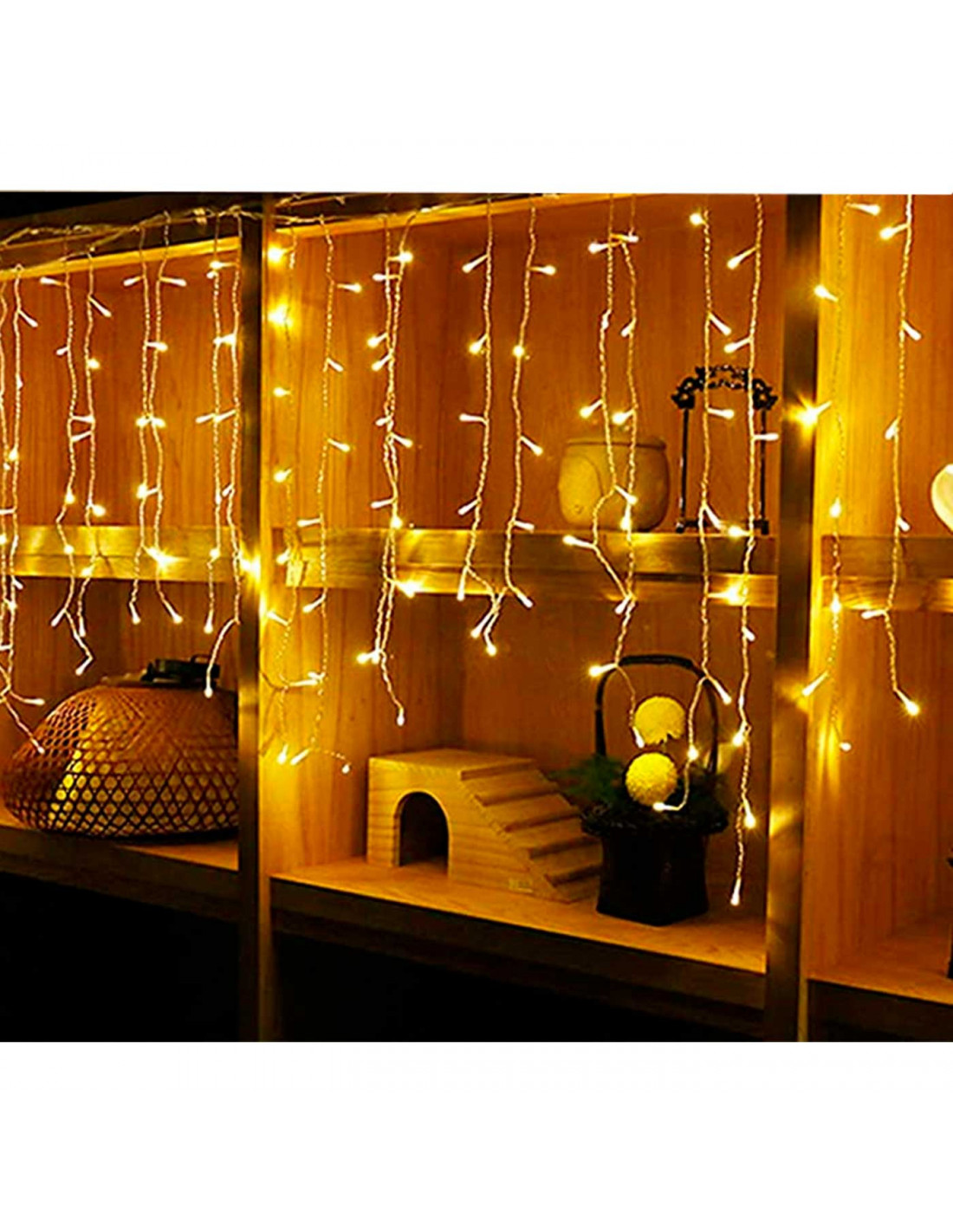 Tradineur - Cortina de 144 luces LEDs - Apto para interiores - Función de luz foja e intermitente - Color Luz cálida