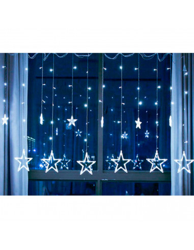 Decora tu hogar estas Navidades con esta preciosa cortina de luz LED con estrellas; sus 138 luces (entre ellas 6 estrellas de 19 cm y otras 6 de 8,5 cm) de color blanco y potencia de 9W crearán un ambiente muy bonito y acogedor. La guirnalda mide aprox. 2,5 x 1 metro (largo x alto) + 1,5 más de cable. Está hecha de plástico y alambre de cobre de alta calidad que no se oxida. Podrás adaptarla fácilmente a espacios como escaparates, ventanas, paredes, etc.