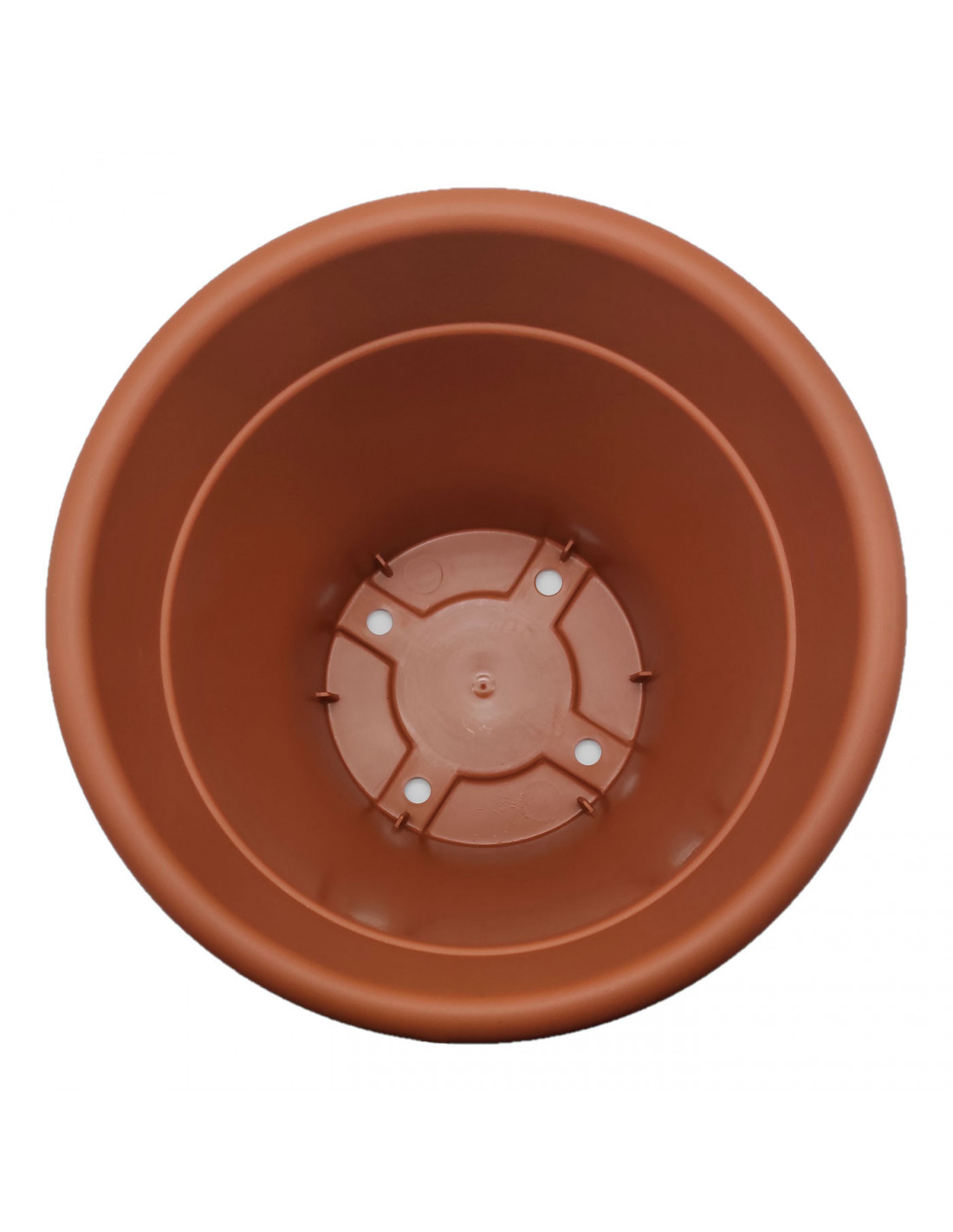 Maceta de plástico redonda marrón, 24,5 cm, 23 litros, modelo Mediterránea para plantas y flores con orificios inferiores, recipiente, macetero, jardín exterior, terraza, balcón e interior del hogar