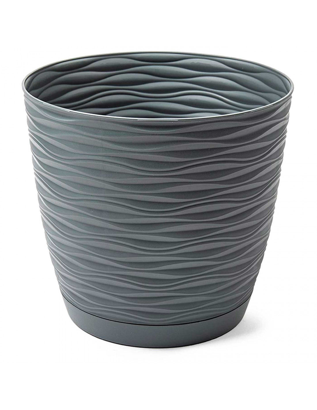 Tradineur - Maceta redonda con plato - Diseño Wind (Ø 27 cm) - Fabricado en plástico - Ideal para jardín exterior, terraza o balcón - Color Antracita