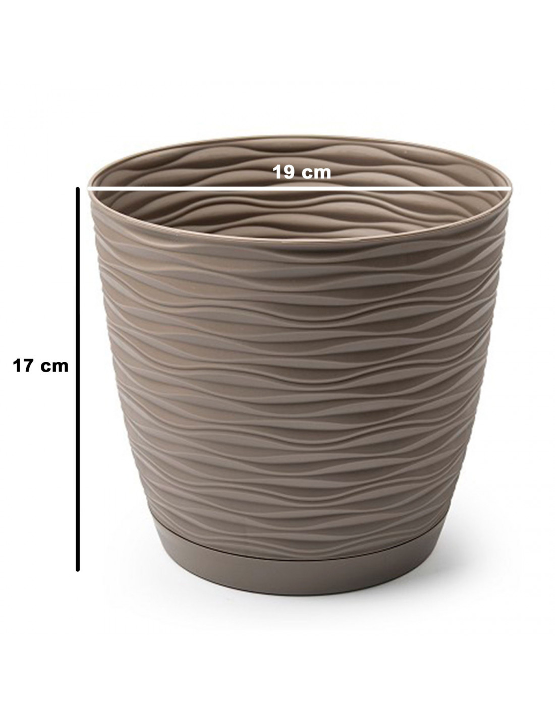 Tradineur - Maceta redonda de plástico, plato integrado, tiesto, macetero de polipropileno, recipiente para plantas, flores, balcón, terraza, hogar, fabricada en España (Wind, Topo, 19 cm)