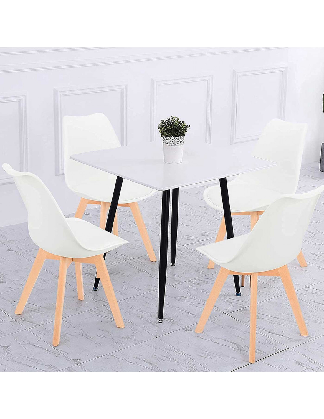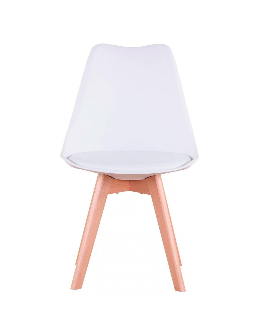 Silla con cojín, asiento de plástico y patas de madera, estilo nórdico, silla de interior, diseño escandinavo, color blanco, 81 x 46 x 53 cm, ideal para comedor, estudio, salón, cocina, dormitorio