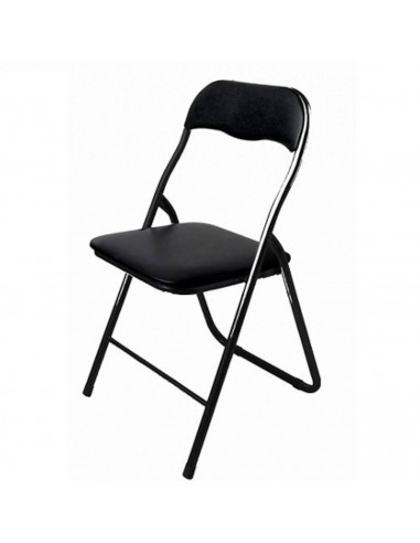 Esta bonita y práctica silla plegable te será muy útil tanto en tu hogar como en el jardín, terraza, patio e incluso para ir de camping o a la playa. El asiento y el respaldo están recubiertos de tela mullida y suave de color negro para una mayor comodidad. El asiento tiene una superficie de 38 x 38,5 cm (ancho x profundo). El resto de la estructura es de acero y pvc. Cuenta con conteras de goma antideslizantes en las patas y reposapies.