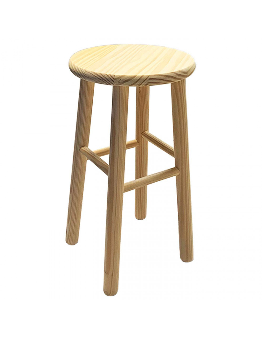 Está fabricado en madera sin tratar por lo que es ideal si lo quieres pintar o decorar a tu gusto. Mide 47 cm de alto. Su parte superior es circular, diámetro de 25 cm, lo que evita que te puedas herir con los cantos. Tiene 4 patas redondeadas con reposapies.