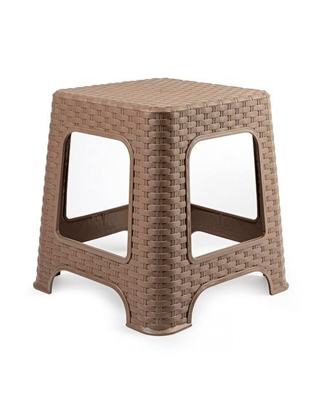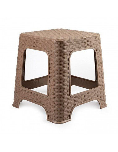 Tradineur - Taburete de plástico - Fabricado en España - Diseño Rattán hogar o el Trabajo - 33 x 32 x 32 cm - Color Marrón Topo