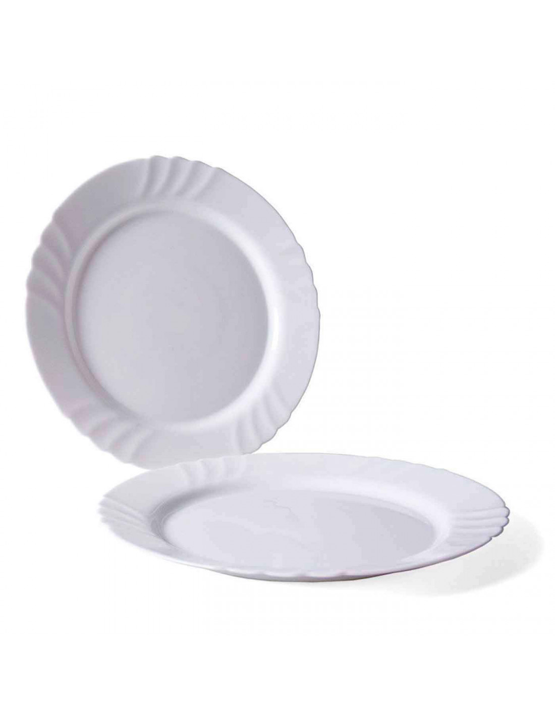 Fuente redonda llana "Ebro" fabricada en vidrio opal, ideal para servir postres o aperitivos, apto para lavavajillas. 2 x 32 cm (alto x diámetro)