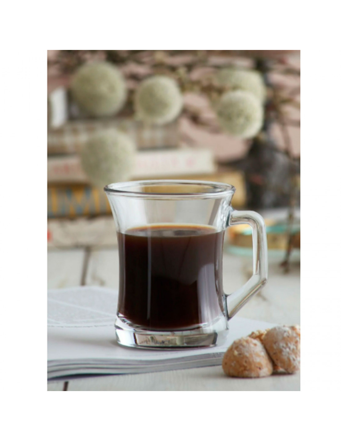 Estos vasos de cristal con asa son elegantes a la vez que prácticos. Valen tanto para el día a día como para disfrutar de un té o café con amigos o familiares. El pack consta de 6 unidades que cuentan con una capacidad de 225 ml.