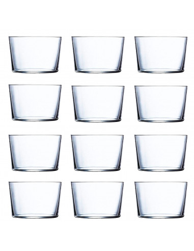 El pack consta de 12 unidades que cuentan con una capacidad de 23 cl. Cada vaso mide aprox. 8,2 x 6 cm (diámetro superior x altura) y son aptos para lavavajillas. El diámetro aproximado de la base es de 7 cm.