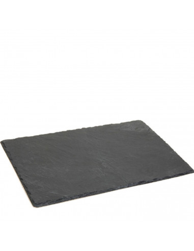 Tradineur - Plato de Pizarra Rectangular, Bandeja para hosteleria, servicio y degustación, Canto rústico, Tabla de Piedra Natural para Servir Aperitivos - 30 x 20 cm