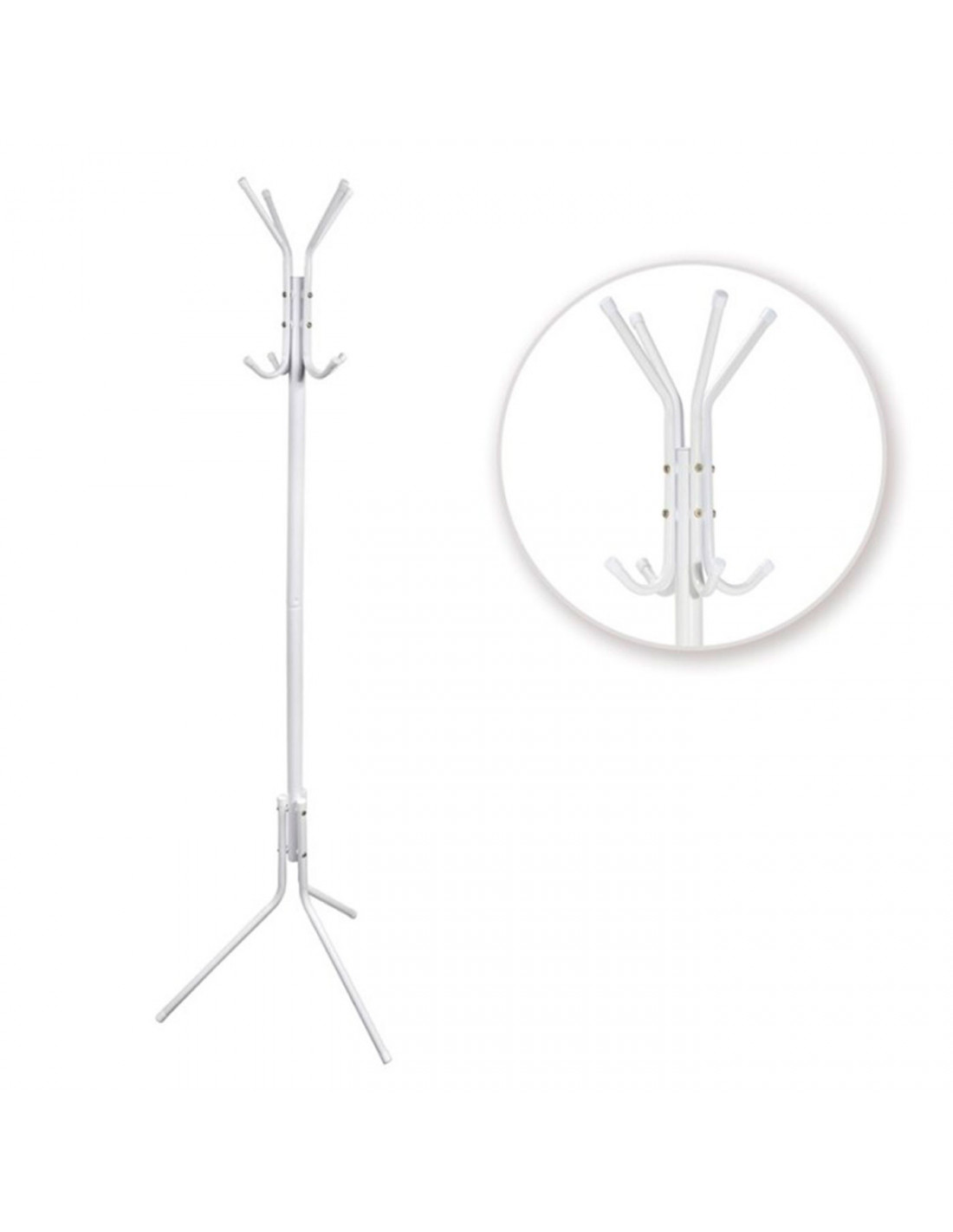Tradineur - Perchero de pie blanco metálico 8 ganchos 170 x 48 cm, soporte clásico para colgar abrigos, sombreros, bolsos, estilo minimalista, para recibidor de oficina, hogar
