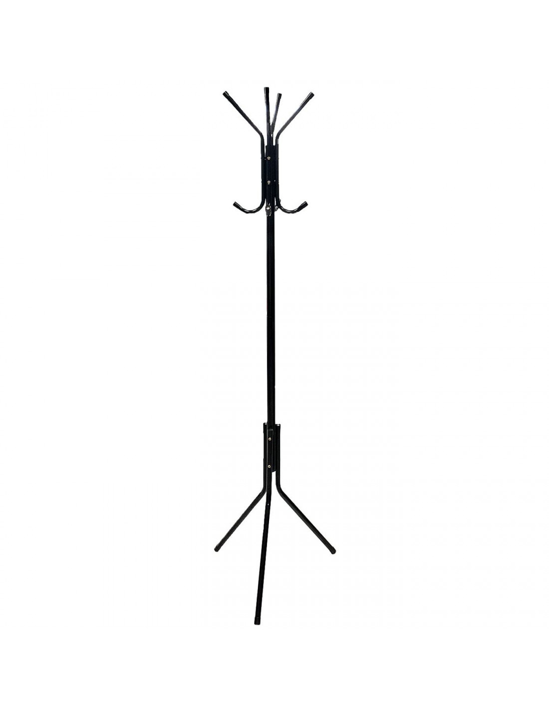 Tradineur - Perchero de pie metálico con 8 ganchos, soporte para abrigos y sombreros, estilo minimalista, para recibidor, salón u oficina (Negro - 170 x 48 cm)