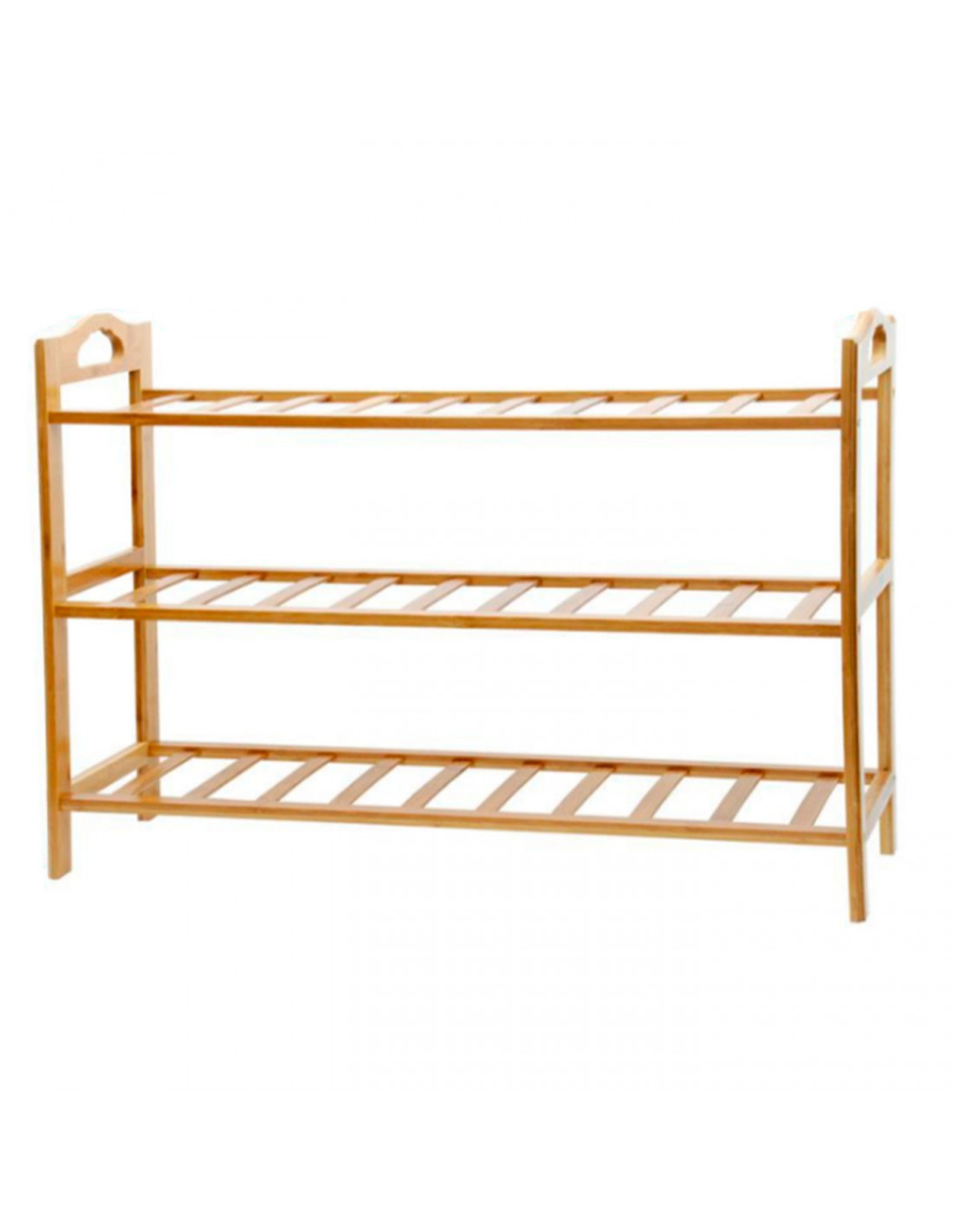 Ten tu calzado ordenado gracias a este zapatero de bambú con tres estantes. Es muy fácil de montar e incluye los tornillos y la llave necesarios para hacerlo. Posee una capacidad aproximada para 9 pares de zapatos. Además, las asas de los laterales hacen que sea muy cómodo de mover de un lugar a otro.