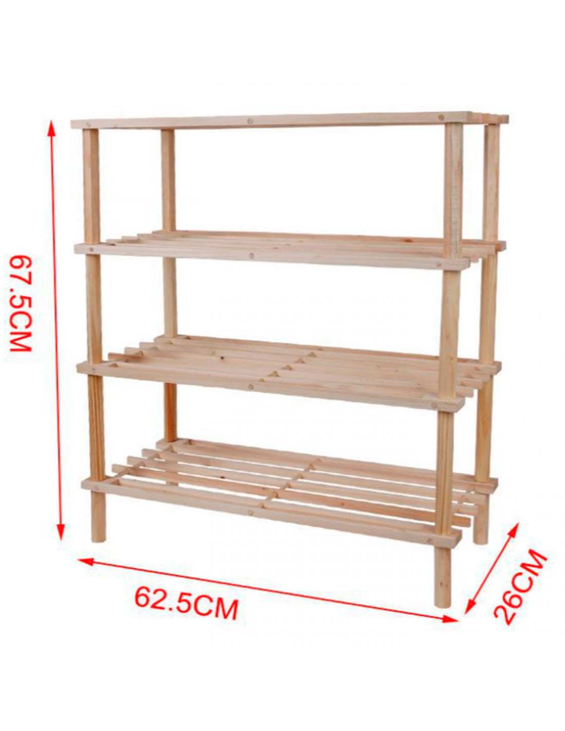 Zapatero de madera 4 niveles. estantería, mueble zapatero de madera 4 alturas multiuso, soporte para zapatos, recibidor - 62,5 x 26 x 67 cm - Color Natural